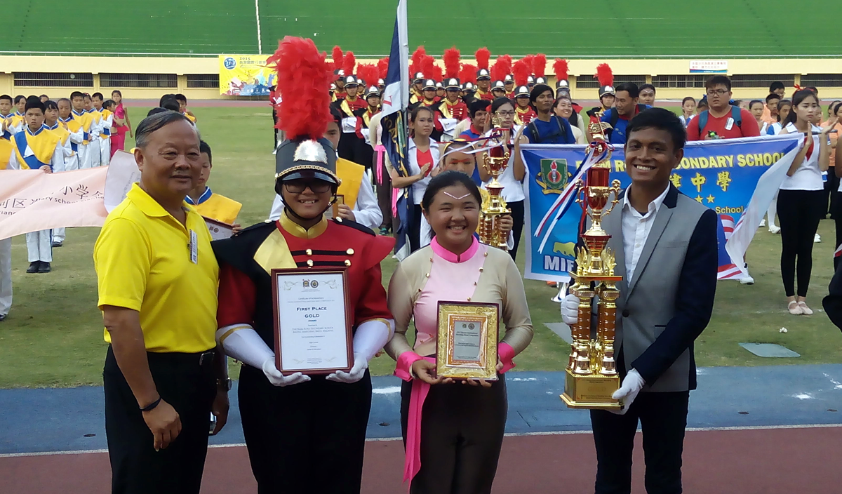 The band winning the Gold Award in the secondary school section of the Taiwan International Marching Band Show.