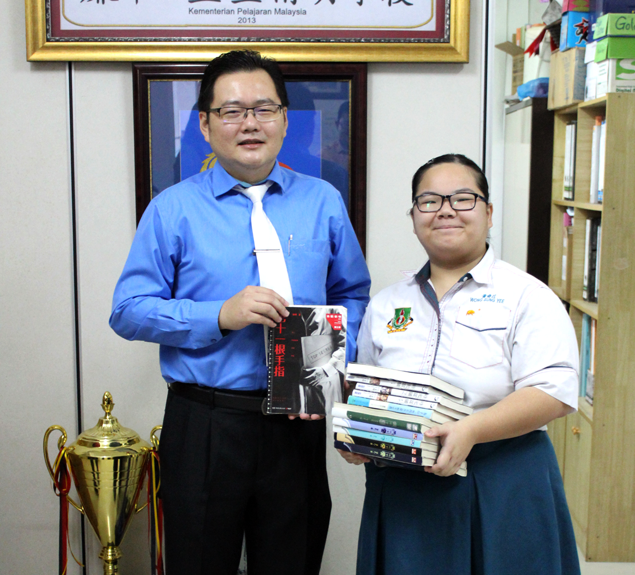 (美里讯)廉律中学阅读风气提升,高二班学生黄舜苡捐赠12本藏书予学校图书馆,让大家都有机会阅读。