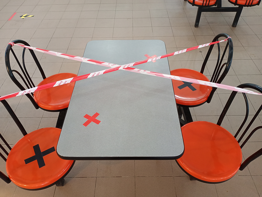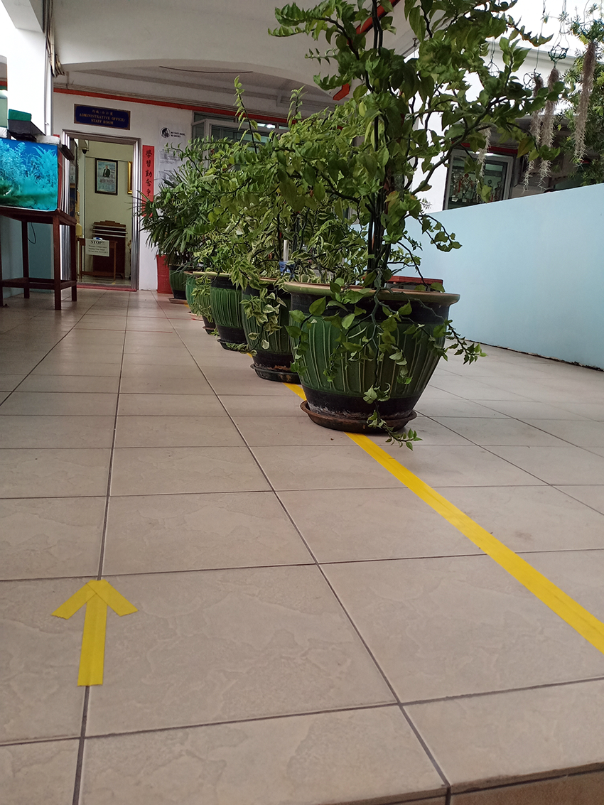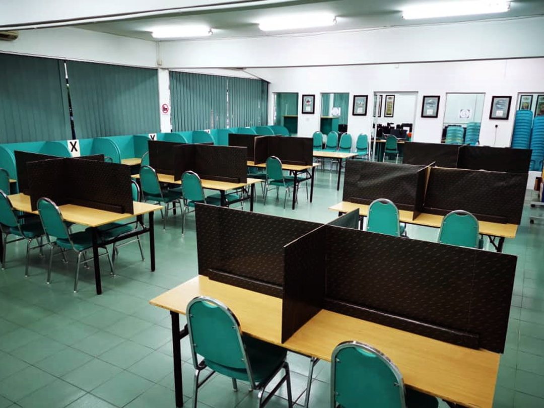另外,该校图书馆座位已置放隔板,确保使用者保持社交距离。学校的范围内都张贴着标志社交距离的贴纸,包括桌椅、地板、走廊等。