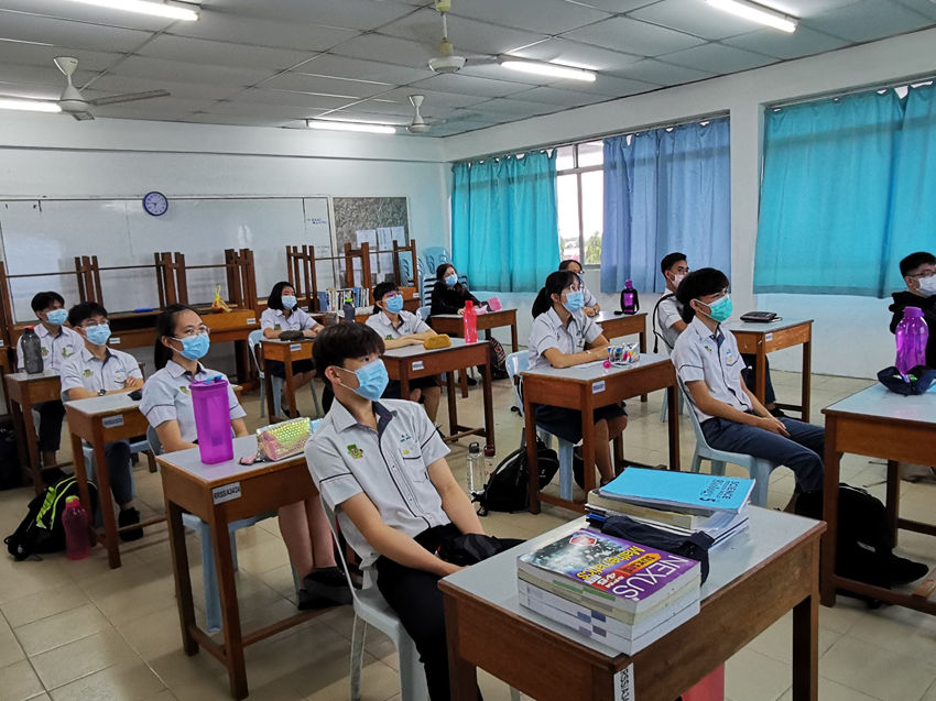 (美里讯)廉律中学高二会考生重返校园,迎来“特殊时期”复课的第一天。高二会考生首日复课出席率达96%。