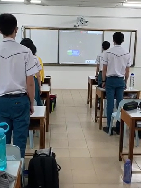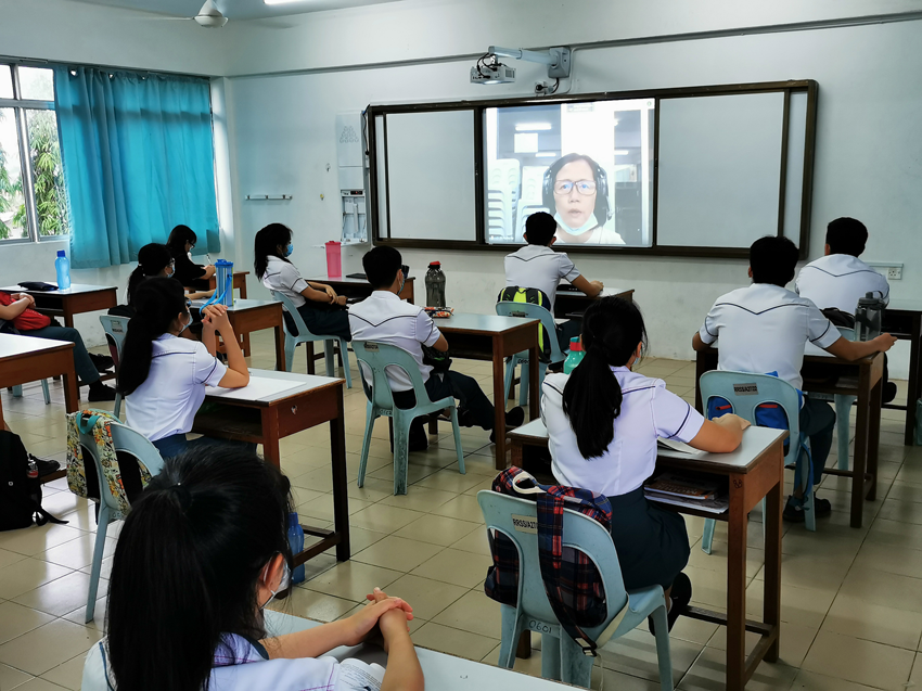 (美里讯)廉律中学今早以该校新安装的互动式电子白板,为各班高二会考生进行线上周会,班主任和学生在各班级一同站立唱国歌、校歌,听首席执行员何宝玲博士和校长刘世聪致辞。
