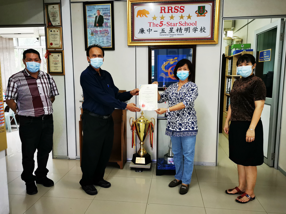 廉中获得由美里教育厅颁发的“努力卓越奖状”。右二为首席执行员何宝玲博士,左2