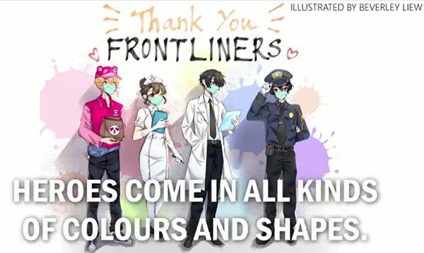 温俊亮为此视频主要发起人,他表示,有感前线人员奔波在疫情最前线,新年期间也无法回乡与亲人团聚,确保我们大家平安健康的生活,于是找了刘嘉媛和许诚琳一同制作视频,向辛劳付出的前线人员致敬。