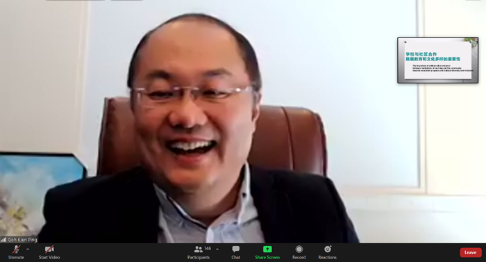 拿督林淑强在ZOOM平台上,为廉中教师讲演。