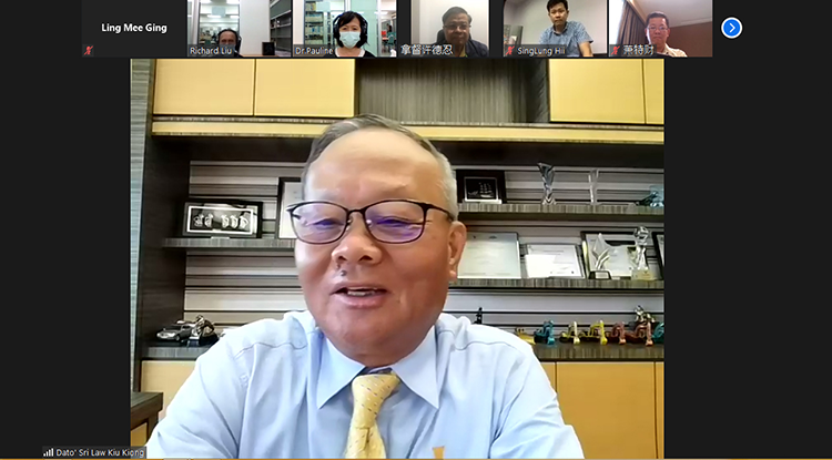 廉中联合董事长拿督斯里刘久健在线上与新生会面。