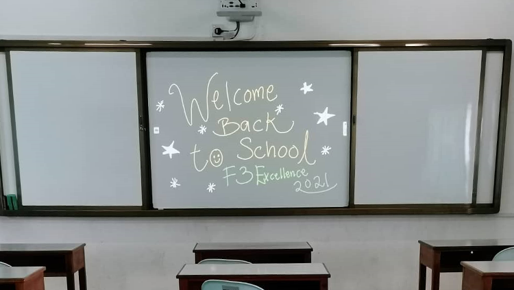 该校19日恢复返校上课,采用实体课和网课进行,部分班级轮流到校上课。高中一、高中二和高中三生每天(星期一至星期五)到校上实体课。过渡班、初中一、初中二和初中三班则轮流上实体课和网课。网课和实体课均采用实体课课程表。