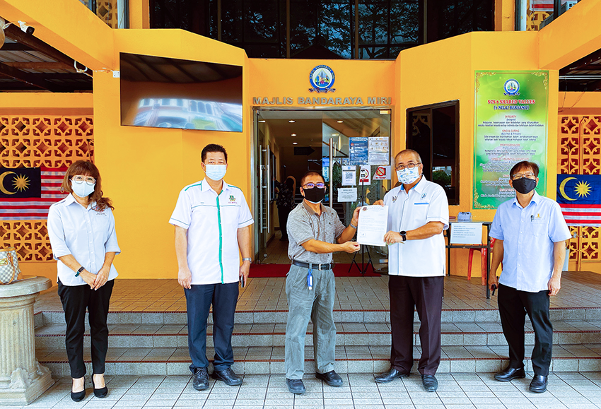 筹委会主席ABK吴克成市议员(右3)移交“廉律中学教学楼募