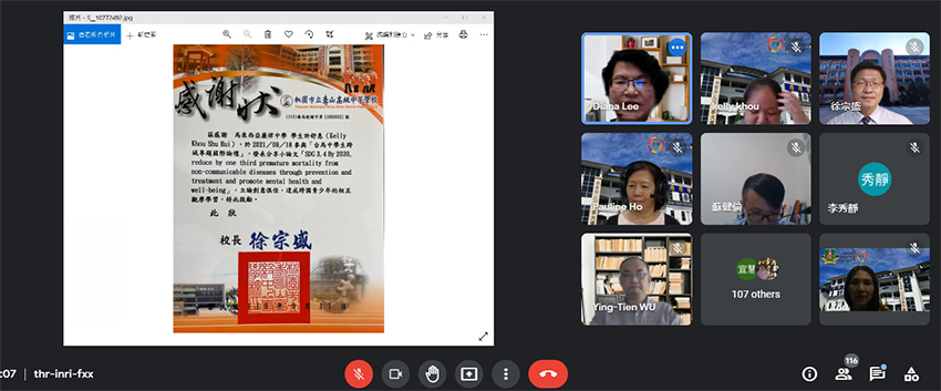 (美里讯)基于後疫情時代,实体活动受到诸多限制,但是透过互联网无所不在,无所不连,也相对縮短世界的距离。廉律中学首席执行员何宝玲博士表示该校和台湾桃园市立寿山高中透过马台两国教育夥伴,共同携手搭建国际平台,让兩国青少年共研一室,彼此理解,面對未來联合国可持续发展目标(SDGS)相关议题,相互分享研究心得,观摩切磋,共同成長。