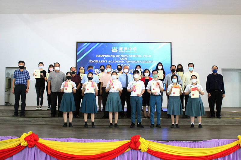 她也在典礼上感谢过去两年来,疫情期间不辞劳苦让校方顺利运作的管理层。会上也颁发奖项予2021年高初中统考优异生。