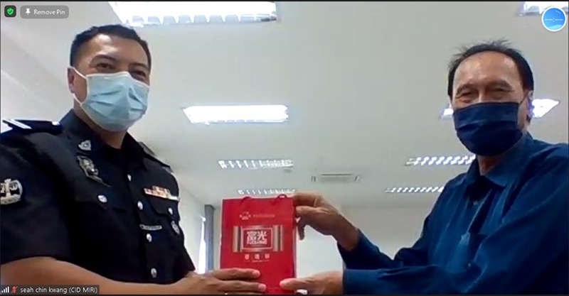 廉中副首席执行员刘世聪(右)赠送纪念品予美里警区高级