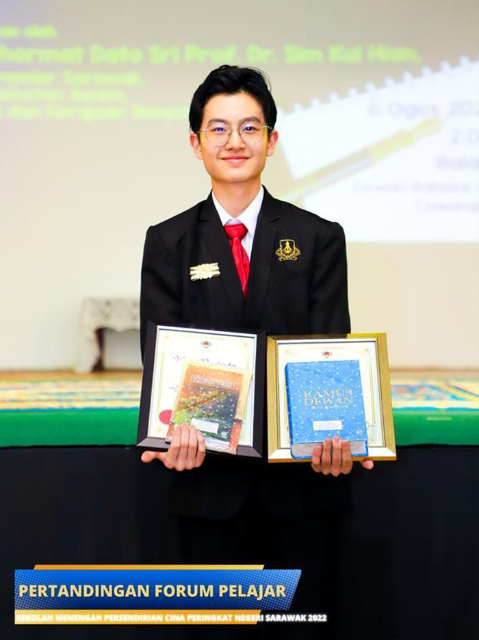 (美里讯)廉律中学象棋棋手杨宇道在“2022年砂拉越华文独立中学象棋比赛”中荣获男子组冠军,为校争光。