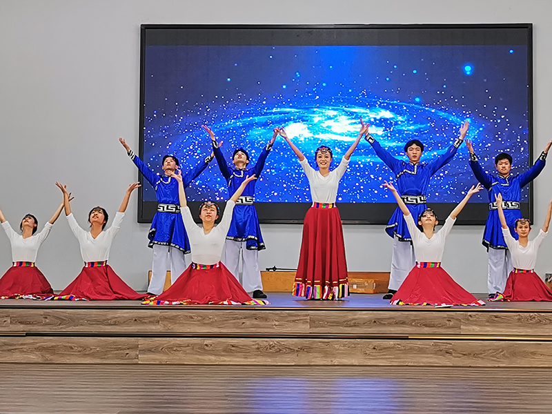 廉中生在“新春联欢会”上呈献舞蹈表演。