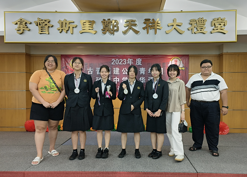 廉律中学代表队在2023年福联青全国中学生华语辩论赛砂州区域赛中夺得