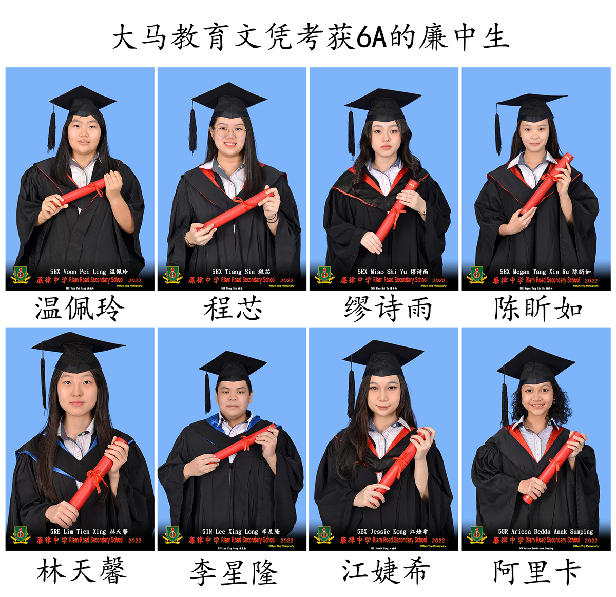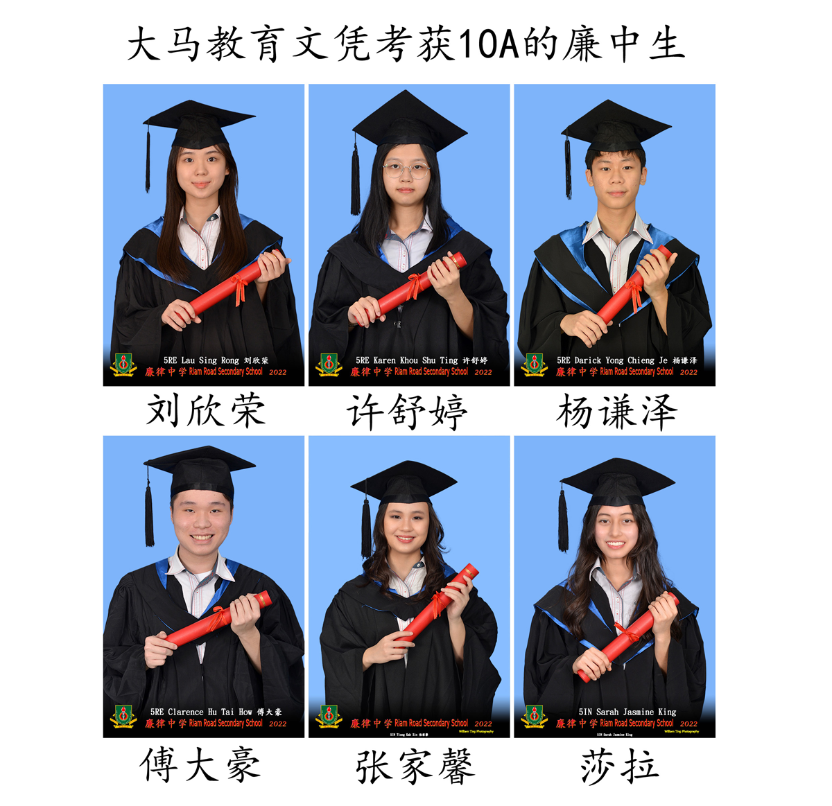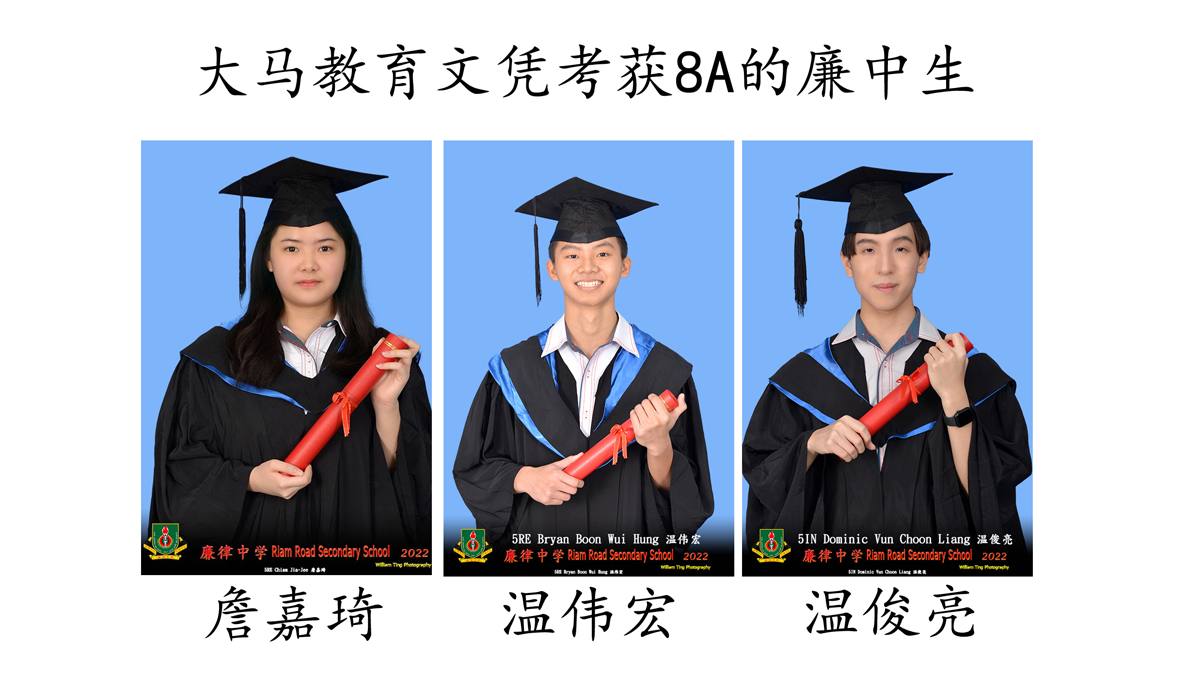 傅大豪、杨谦泽、许舒婷、刘欣荣、莎拉、张家馨考获10A;杨晋名、钱敬心、范齐盛、何治杰考获9A;温伟宏、詹嘉琦、温俊亮考获8A;萧定义、刘嘉媛、卡米利亚、许祯德考获7A;阿里卡、江婕希、李星隆、林天馨、陈盺如、缪诗雨、程芯、温佩玲考获6A。