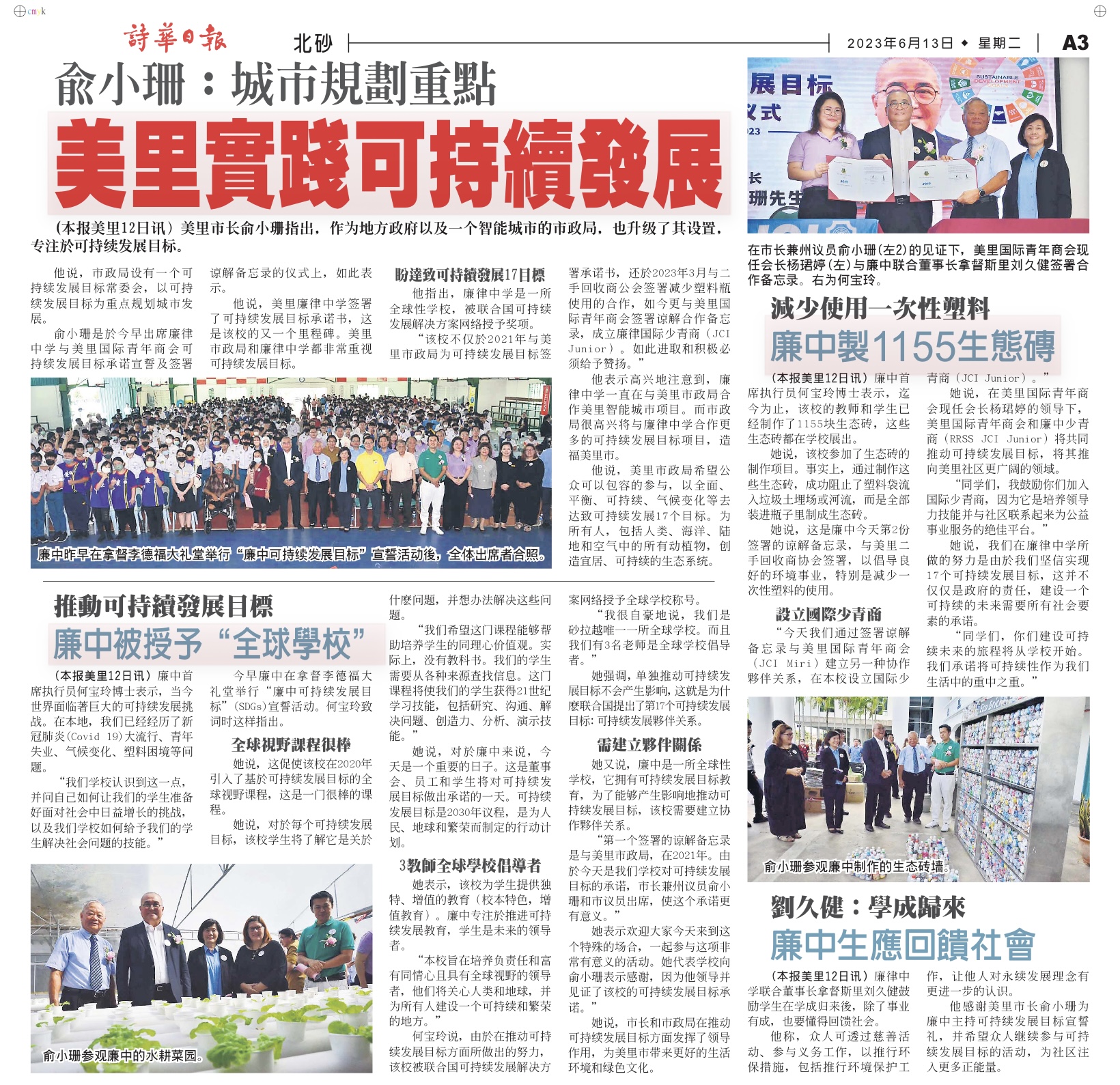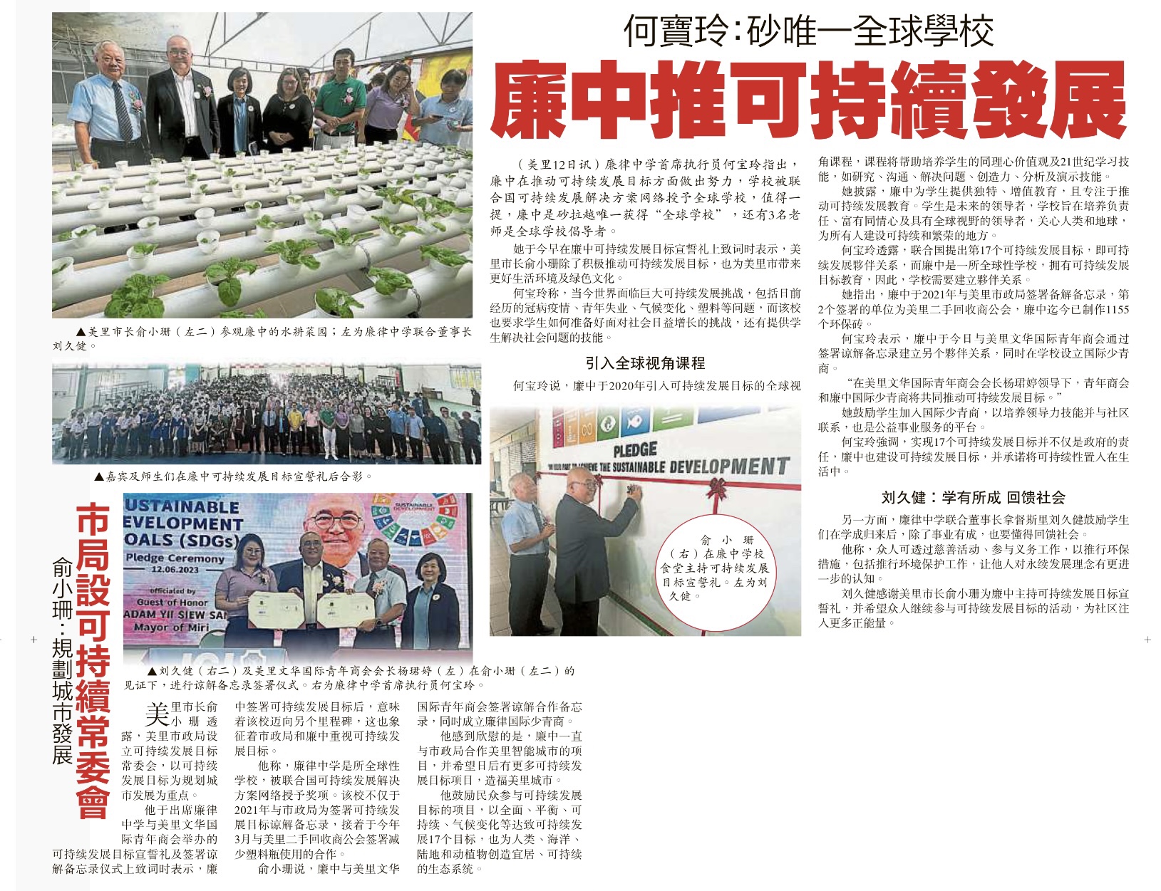 此外,她说,廉中推行联合国可持续发展目标以来,希望贯彻可持续发展教育目标,期待培养出“全球公民”。