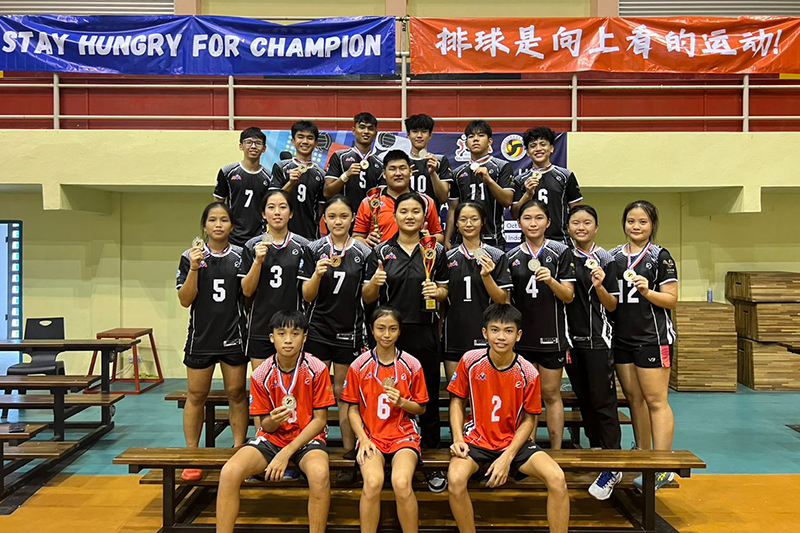廉律中学排球队在2023年第十届马来西亚华文独中球类赛,女队夺冠,男队