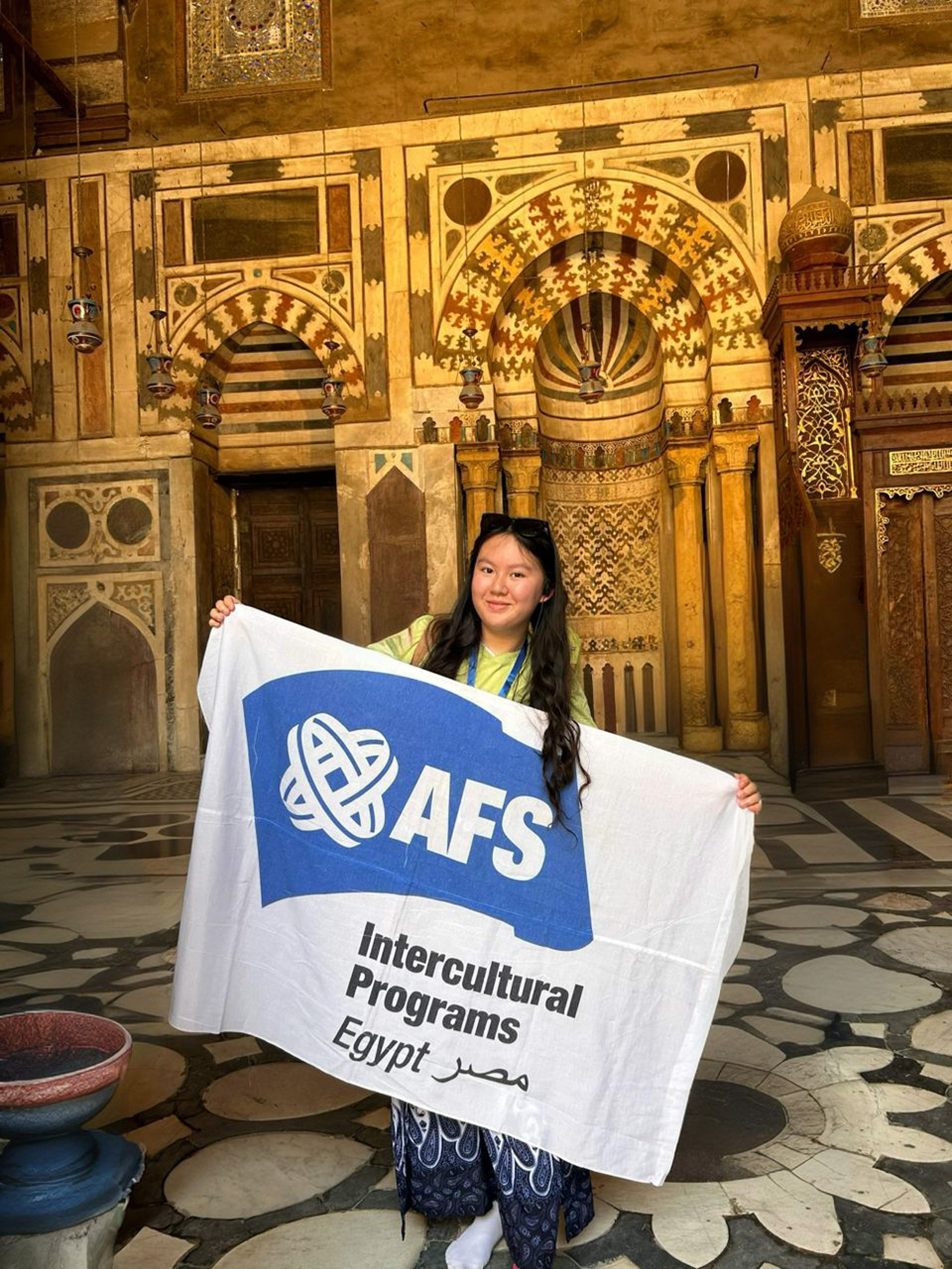 余佳家同学与她期待已久的骆驼及金字塔合影。 余佳家同学感谢廉律中学的栽培,也感谢AFS国际文化交流计划提供的奖学金。