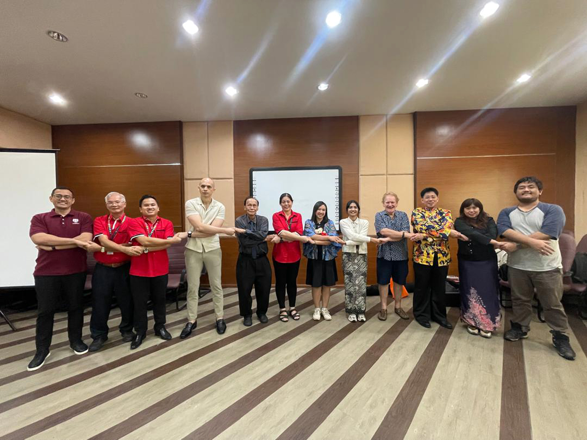 《AI Ready ASEAN》人物专题影片拍摄团队与副首席执行长刘世聪先生(左5)、江佩娟校长(左8)、康亚雄副校长(左3)、陈开慈副校长(左2)和《AI Ready ASEAN》培训导师温春德(右3) 老师合摄。