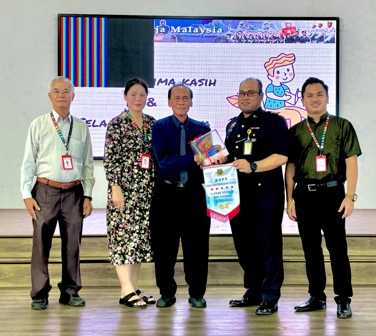 最后,他也要向远在中国、因公务无法亲临美里的施洪亮书记兼校长、马爱民副院长、钟蓓蓓副主任、徐丽娟老师与刘诗佳老师,致上最真挚的谢意。正因你们的支持与促成,这段跨越国度的友谊与合作才能顺利展开。愿今日的交流成为美好起点,愿两校合作的纽带愈加紧密,愿中马两地的教育与文化因彼此的连接而更加繁盛。“祝福华东师大二附中附属初级中学乘风再起,蒸蒸日上;祝愿两校友谊长存,合作长久,携手共创教育新篇章。”