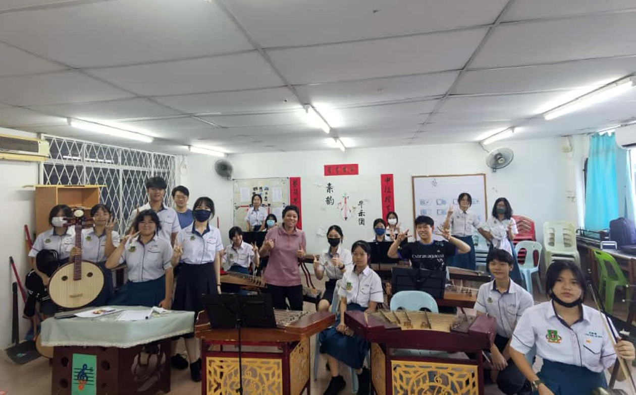 張芳品同學於文娛晚會上進行古箏表演時攝。 張芳品同學參於慶祝馬來西亞日活動時進行國語歌曲大合唱。