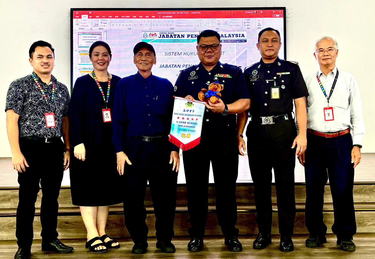 廉律中学为加强学生对法律后果与国家刑罚制度的认识,特于上周五12月5日邀请了来自美里中央监狱(Penjara Pusat Miri)的监狱官前来校园进行专题讲座,向学生分享我国监狱制度与刑罚执行流程,以提升学生的守法意识与社会责任感。