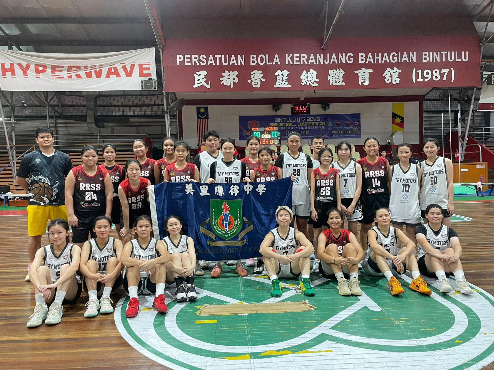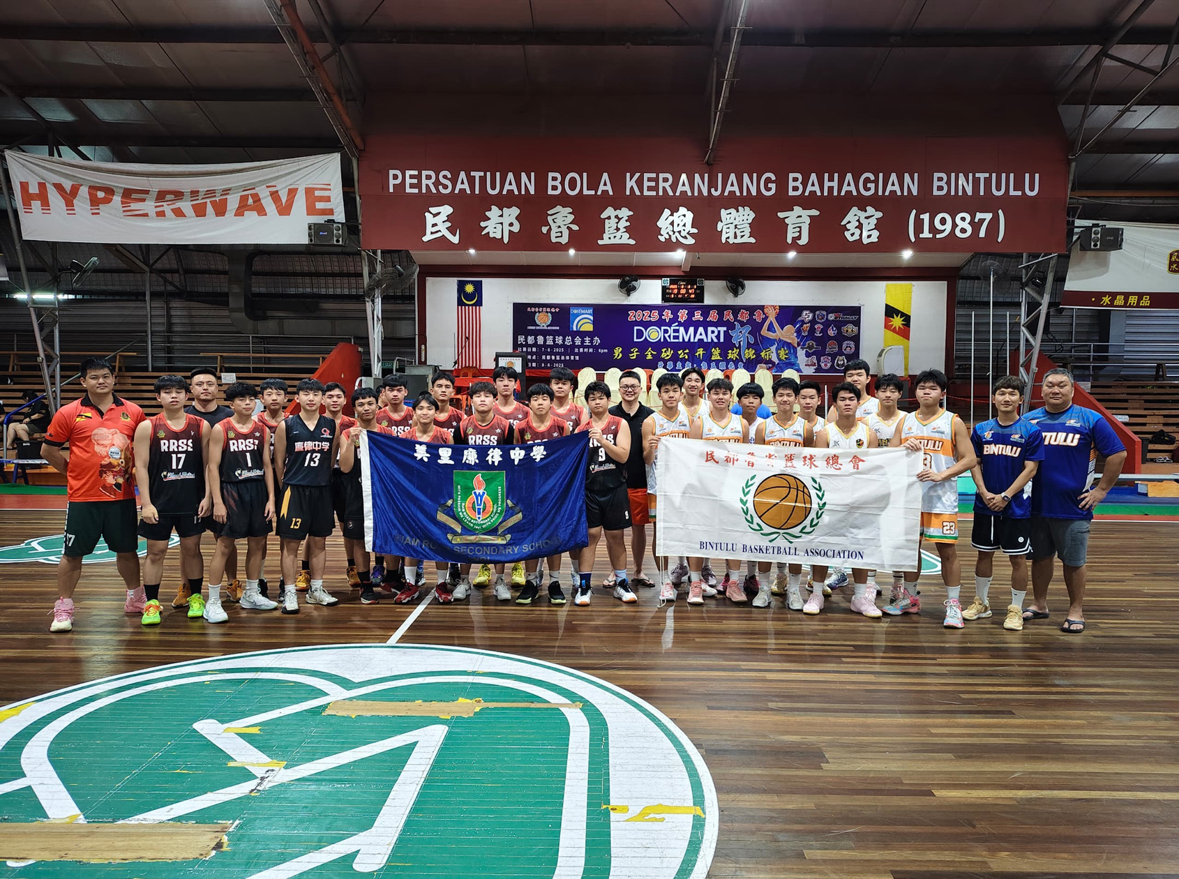 廉律中學籃球校隊與民都魯開智中學合攝。
