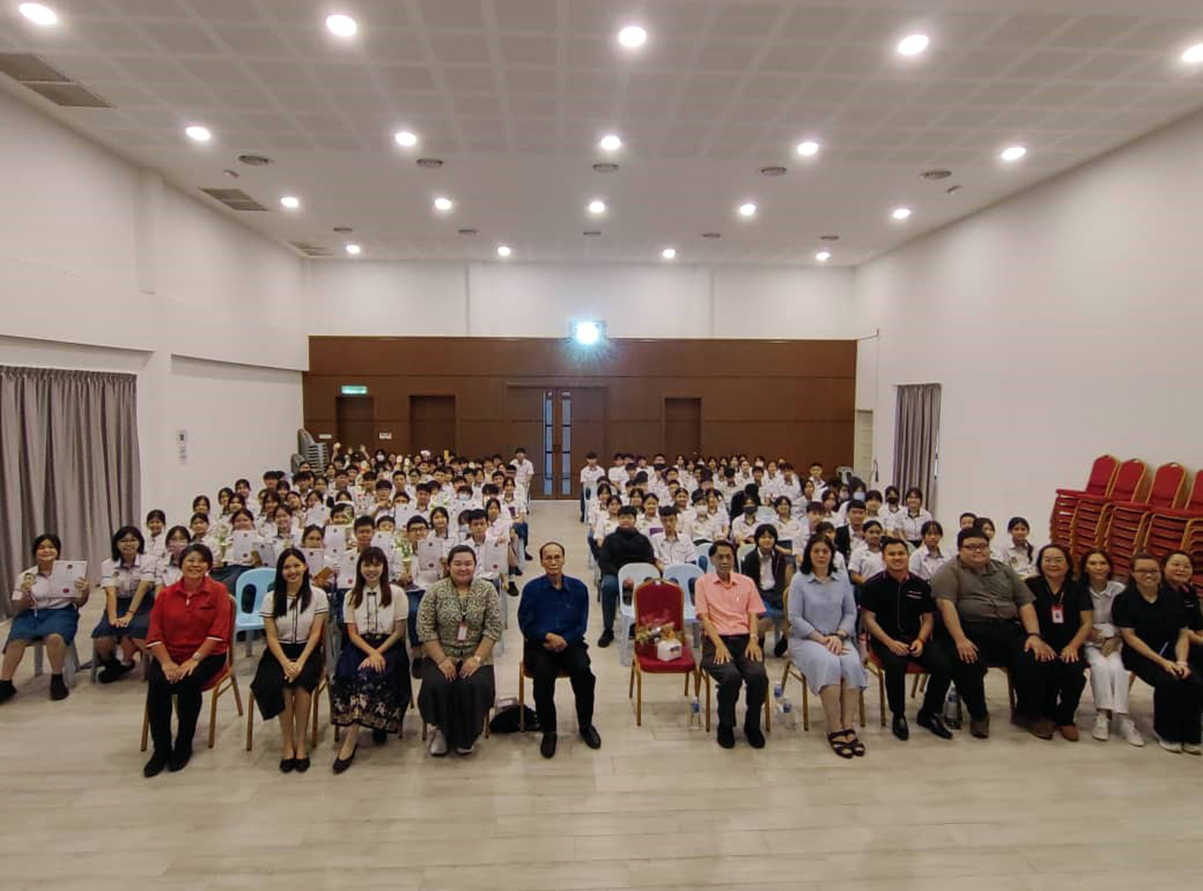 主宾、副董事长拿督刘贤仕(后排右五)、副首席执行员刘世聪(后排左四)及 颁奖典礼圆满结束后,现场全体师生及嘉宾一同进行大合照,留下珍贵的纪念时刻,