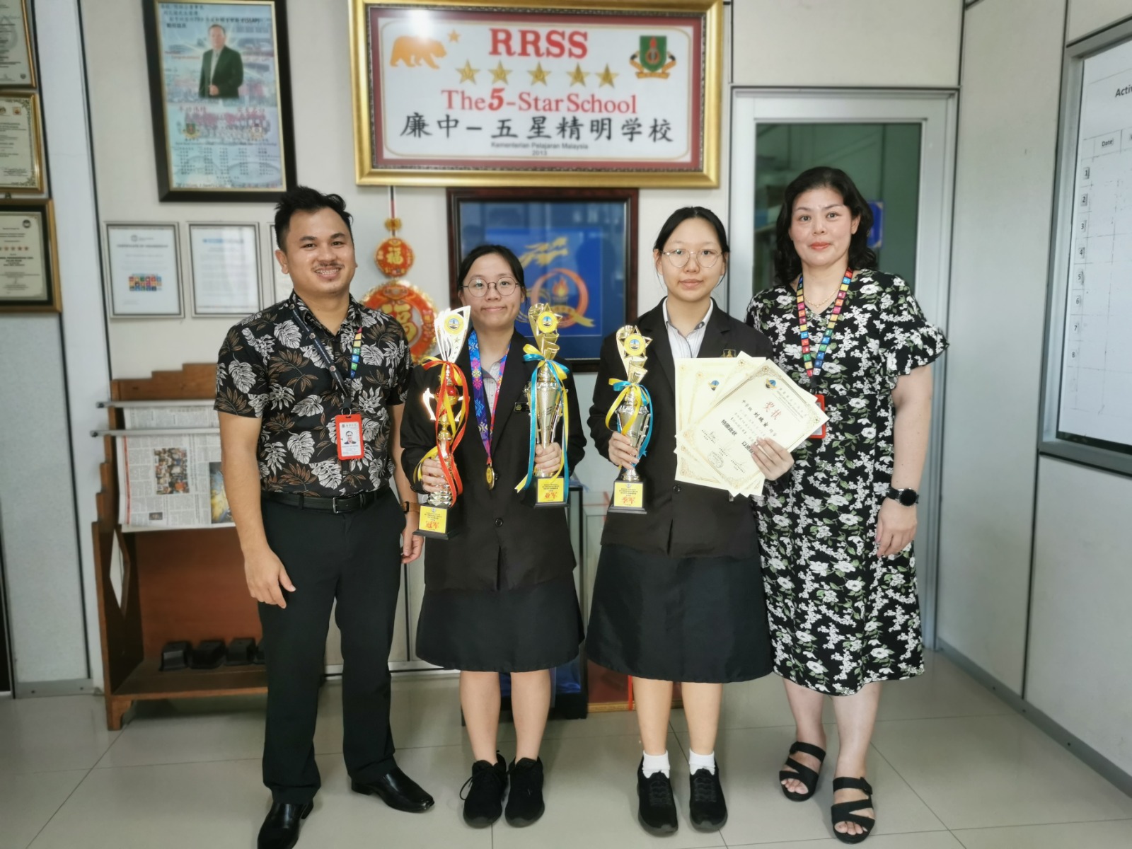 副首席执行员刘世聪也表达了高度赞赏:“我们非常为毛甜洋与刘瑞萱感到骄傲。毛甜洋在绘画、书法与乒乓团体赛中的优异表现,不只是她个人的荣耀,也为学校赢得崇高声誉。她的多面向发展是廉中教育理念的真实写照。她展现了艺术的细腻、书法的沉稳以及体育的敏捷,是我们‘德、智、体、美、劳’五育并重方针的杰出代表。”