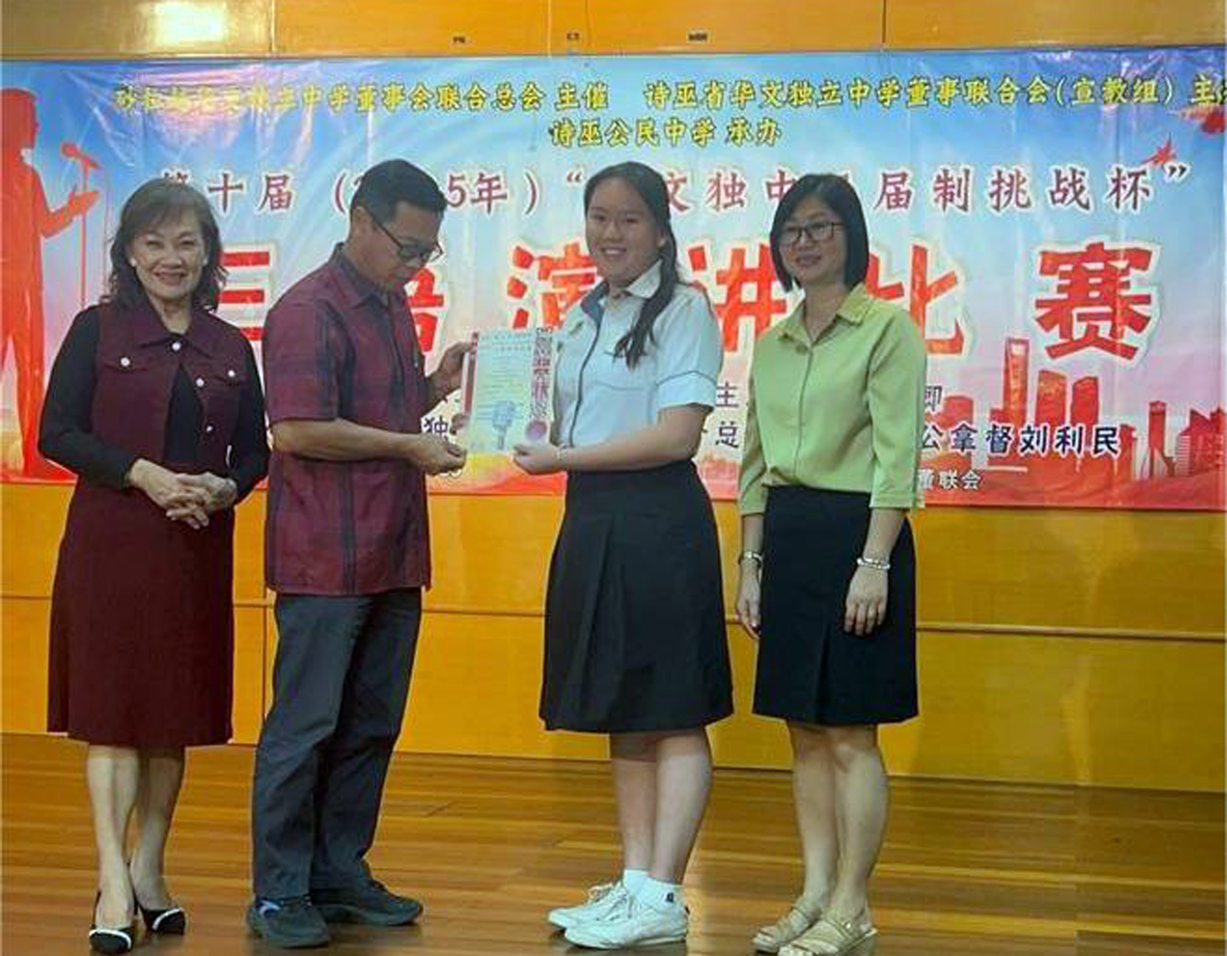 副首席执行员刘世聪先生也高度肯定学生的表现,并补充道:“廉律中学始终坚持多语并进的教育方向,致力于培养能以多语言清晰表达思想、有效沟通的学生。这不仅是为应对考试或比赛,更是为了在未来社会中具备竞争力与文化理解力。三语演讲训练的是逻辑思维、语言组织、临场应变和自我表达的综合能力,这些都是21世纪所需的关键素养。今天我们的学生所取得的成绩,是他们努力的证明,也是学校教育成果的体现。我们将继续拓展学生展示自我的舞台,让每一位学子都能在语言的世界中找到自己的光芒。”