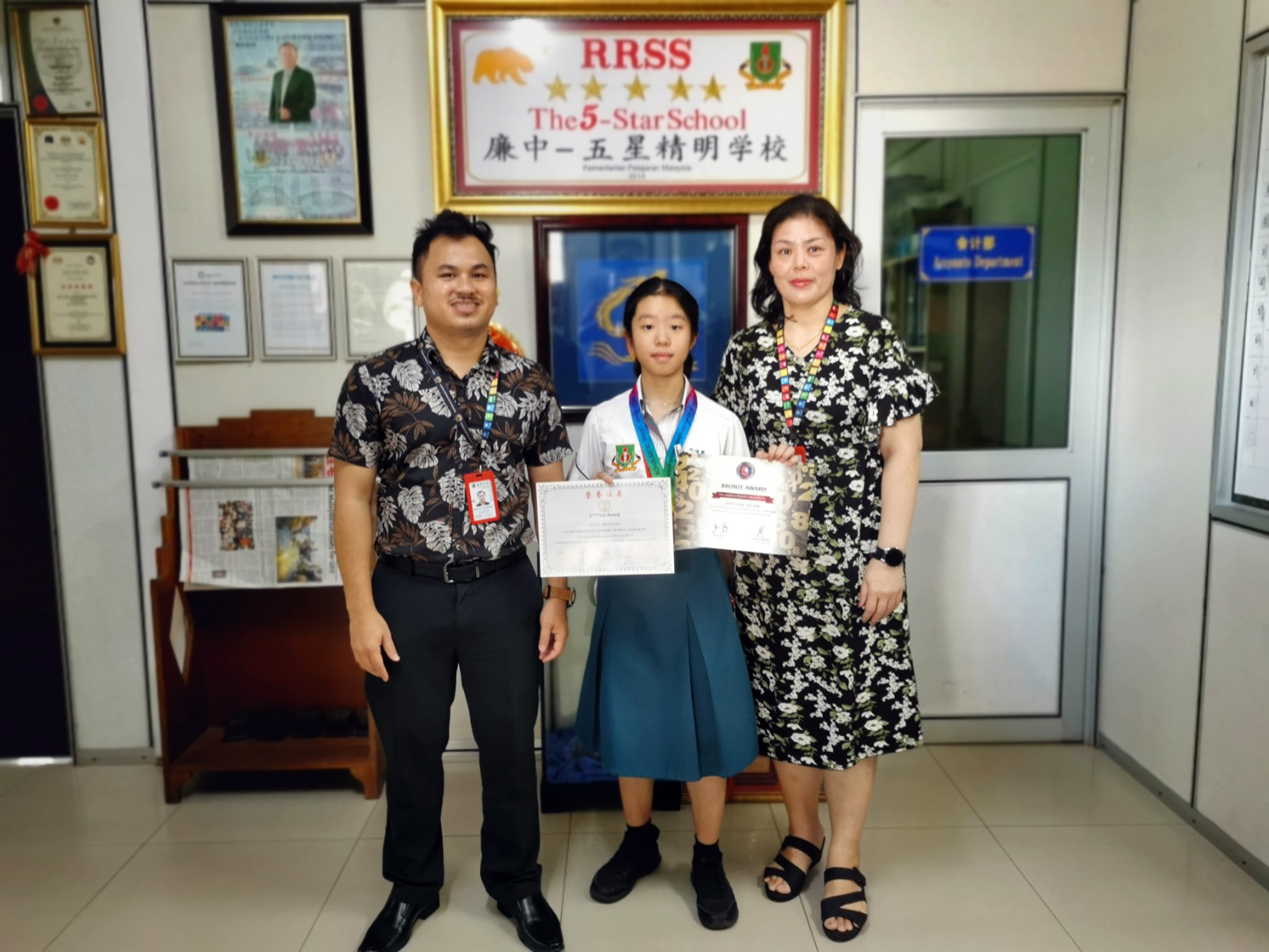 廉律中学短片队伍在由美里鲁哇湾国中与美里教育局(PPD Miri)联合主办的2025年美里省中学短片比赛中脱颖而出,荣获季军佳绩。同时,该队也荣获技术奖(最佳剪辑),而来自高二廉正班的罗长宇同学则凭着真挚动人的演出获得评审青睐,勇夺“最具潜力演员奖”,为学校再添光彩!廉律中学短片队伍在由美里鲁哇湾国中与美里教育局(PPD Miri)联合主办的2025年美里省中学短片比赛中脱颖而出,荣获季军佳绩。同时,该队也荣获技术奖(最佳剪辑),而来自高二廉正班的罗长宇同学则凭着真挚动人的演出获得评审青睐,勇夺“最具潜力演员奖”,为学校再添光彩!本次比赛汇聚美里省多所中学优秀作品,竞争激烈。我校作品从剧本策划、演员演绎、拍摄手法到后期剪辑均展现出极高水准,尤其在技术层面赢得评审团的一致肯定。影片所传达的社会议题引发观众共鸣,展现了青年学子的深刻思考能力与表达技巧。罗长宇同学:感谢团队,是他们让我相信自己能做到“这是我第一次参与短片演出,原本只是抱着尝试的心情参与,没想到最后能够获得‘最具潜力演员奖’,我真的很感激也很感动。”罗长宇同学在领奖后分享道。他表示,筹备过程虽然辛苦,但正是这些过程让他学会了“用心去观察角色、用情去演绎生活”。“拍摄过程中,我学会了如何在镜头前自然表达情绪,如何理解角色的内在动机,这对我来说是一次难得的成长与突破。”“我最想感谢的是整个团队,导演、剪辑、剧组同学们,当然还有布莱妮老师与雪莉老师,是她们不断给予我信任和鼓励,让我相信自己可以演好这个角色。这个奖项属于我们所有人。”校长江佩娟:创意与坚持的结合,展现了廉中精神廉律中学校长江佩娟对学生的出色表现表示欣慰和自豪:“我们非常为学生们感到骄傲,这不仅是他们艺术才华的展现,更是团队合作与坚持不懈精神的成果。学校一向重视学生的全面发展。短片比赛正好为学生提供了一个平台,让他们从剧本创作、演出表现到技术制作,皆能亲身体验,并发挥各自专长。我特别欣赏他们在作品中所探讨的社会主题,展现了深度与责任感。”她也不忘感谢指导老师:“布莱妮老师与雪莉老师的用心指导,是这次成功的重要关键。她们不仅传授技巧,更激发了学生的自信与热忱。未来,学校将继续为学生创造更多机会,支持他们在不同领域发光发热。”副首席执行员刘世聪:这不仅是成绩,更是成长的见证廉律中学副首席执行员刘世聪先生也表示:“这次的得奖是对学生努力与毅力的高度肯定,更是学校长期推动素质教育的成果体现。我们不仅看到学生在舞台上的才华,更看到他们在拍摄前后的责任心与纪律感。筹备过程中的挑战不少,但学生们都勇于面对,互相扶持,展现了强烈的团队精神与问题解决能力。”“罗长宇同学的演出令人惊艳,他的眼神、语气、肢体动作都能自然传达角色情感,确实具有未来发展的潜力。我们希望这样的舞台能持续为学生提供锻炼与飞跃的机会。” 他也特别感谢布莱妮老师与雪莉老师的辛勤付出,她们从剧本构思、角色塑造、镜头语言到剪辑装,皆一一把关,为整个团队提供专业与温暖的引导。廉律中学将继续秉持“育人为本、启发潜能”的教育理念,为学生打造更多元的发展平台,培育更多具备创意与责任感的新世代青年。