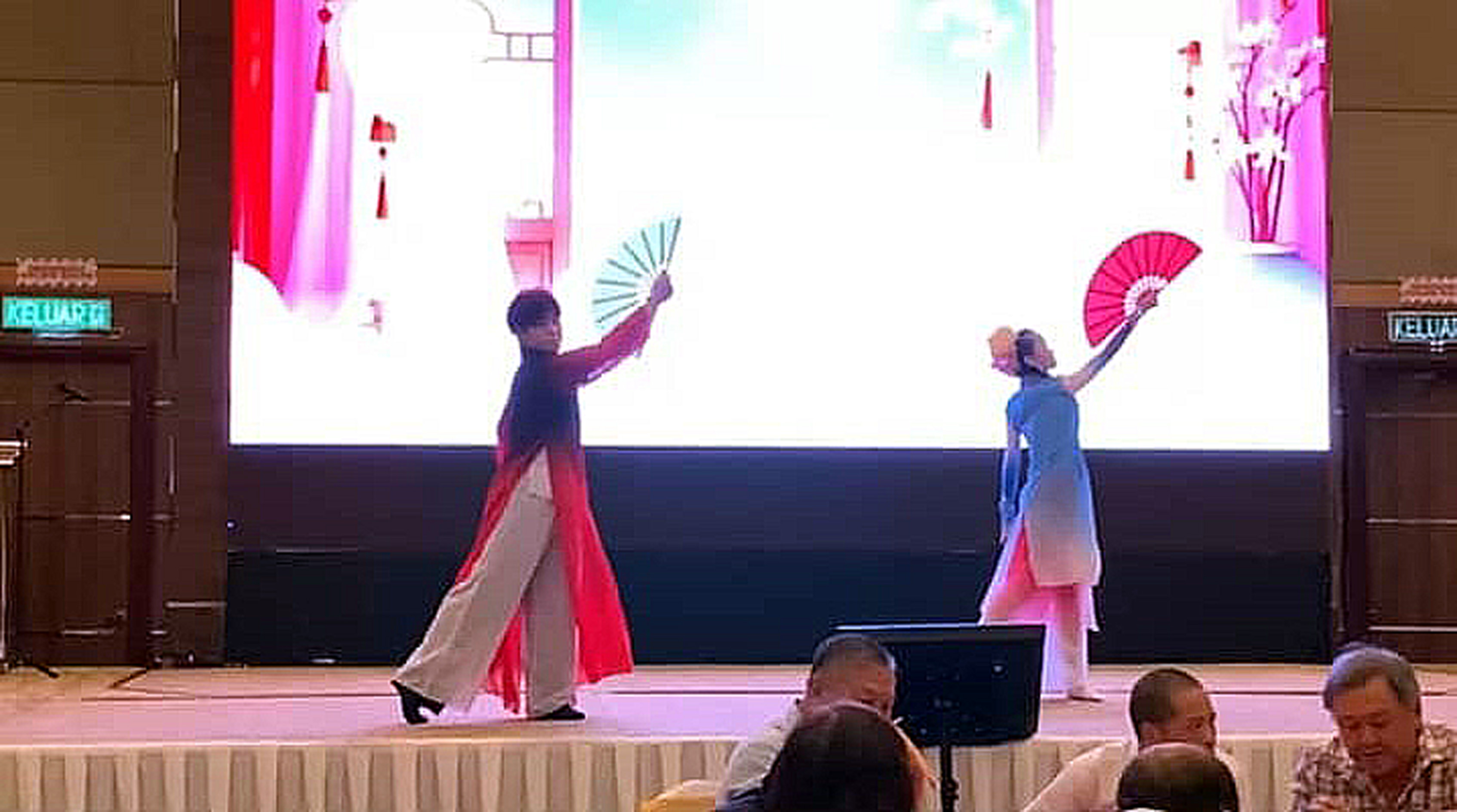 作为晚宴的主宾,廉律中学联合董事长拿督斯里刘久健在致辞中,“文化,是一个民族的根,是一个国家的魂。今晚我们所见的,不仅是一场文化的展示,更是一次心灵的共鸣,一次跨越山海、超越语言的心意传递。我们非常高兴能迎来屏南华侨中学的师生团队,在廉中校园里,感受到浓浓的中华情怀。看到你们带来的传统音乐、方言表演,还有情景剧中的真挚情感,我们倍感亲切。这种情感的链接,正是中华文化历经千年仍历久弥新的力量所在。廉律中学作为本地华文教育的重要据点,一直以来都致力于传承中华文化,不仅重视语言文字的学习,更把舞狮、古筝、书法、诗词、传统礼仪等融入校园生活中。我们坚信,文化的根不能断,教育的火不能灭,而学校,就是这把火最初点燃的地方。在文化全球化与多元碰撞的今天,身为教育工作者,我们更应携手守护这片精神家园。今晚的节目精彩纷呈,既有廉中特有的扁头狮、瑞狮展演,也有融合古典与现代的舞蹈与器乐合奏,这不仅是艺术的呈现,更是文化生命力的体现。我也要特别向在座的家长与赞助者们致以最崇高的敬意。正因为有你们的慷慨解囊与默默支持,才让文化交流之路走得更远更深。愿我们的下一代,不只会说中文、读中文,更懂中华文化之美、中华精神之坚、中华礼仪之善。最后,我希望廉律中学与屏南华侨中学能够携手并进,继续开展更广阔的文化交流项目,筑梦新时代,共谱新篇章。”