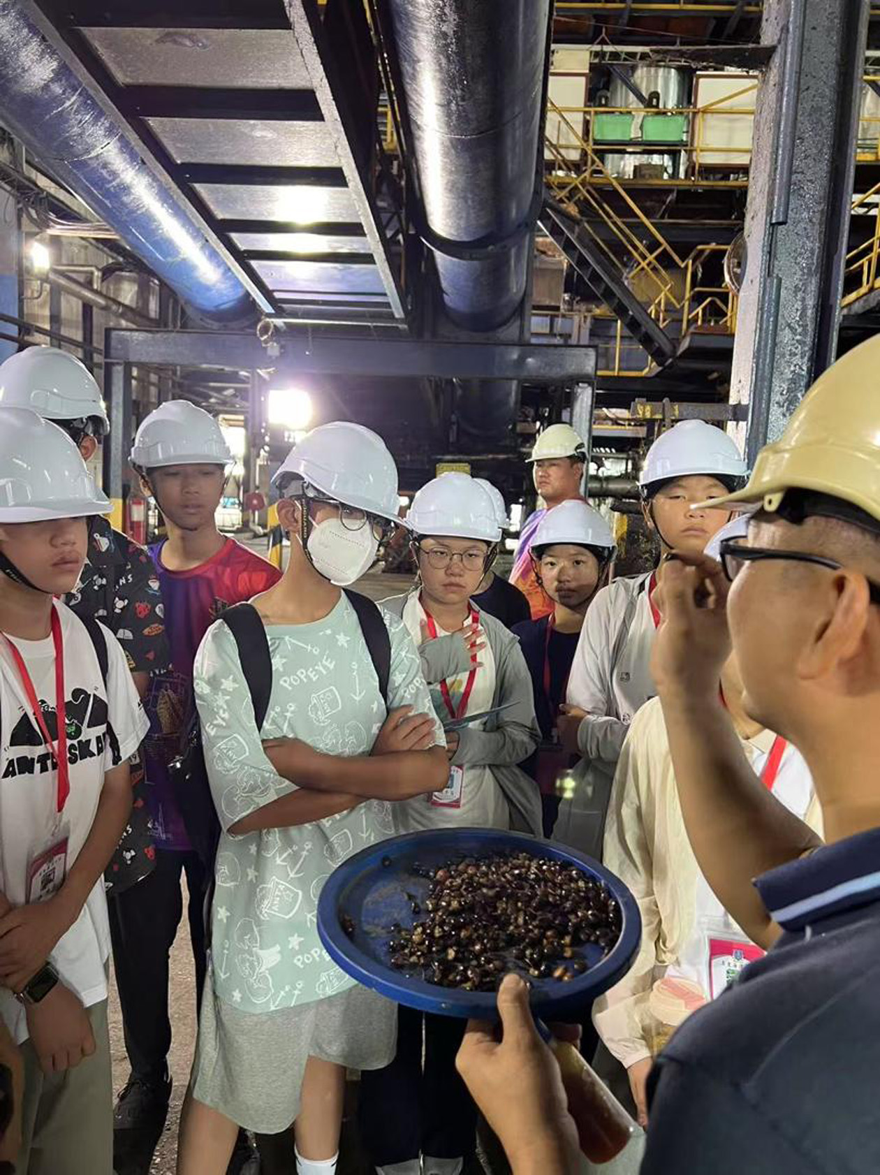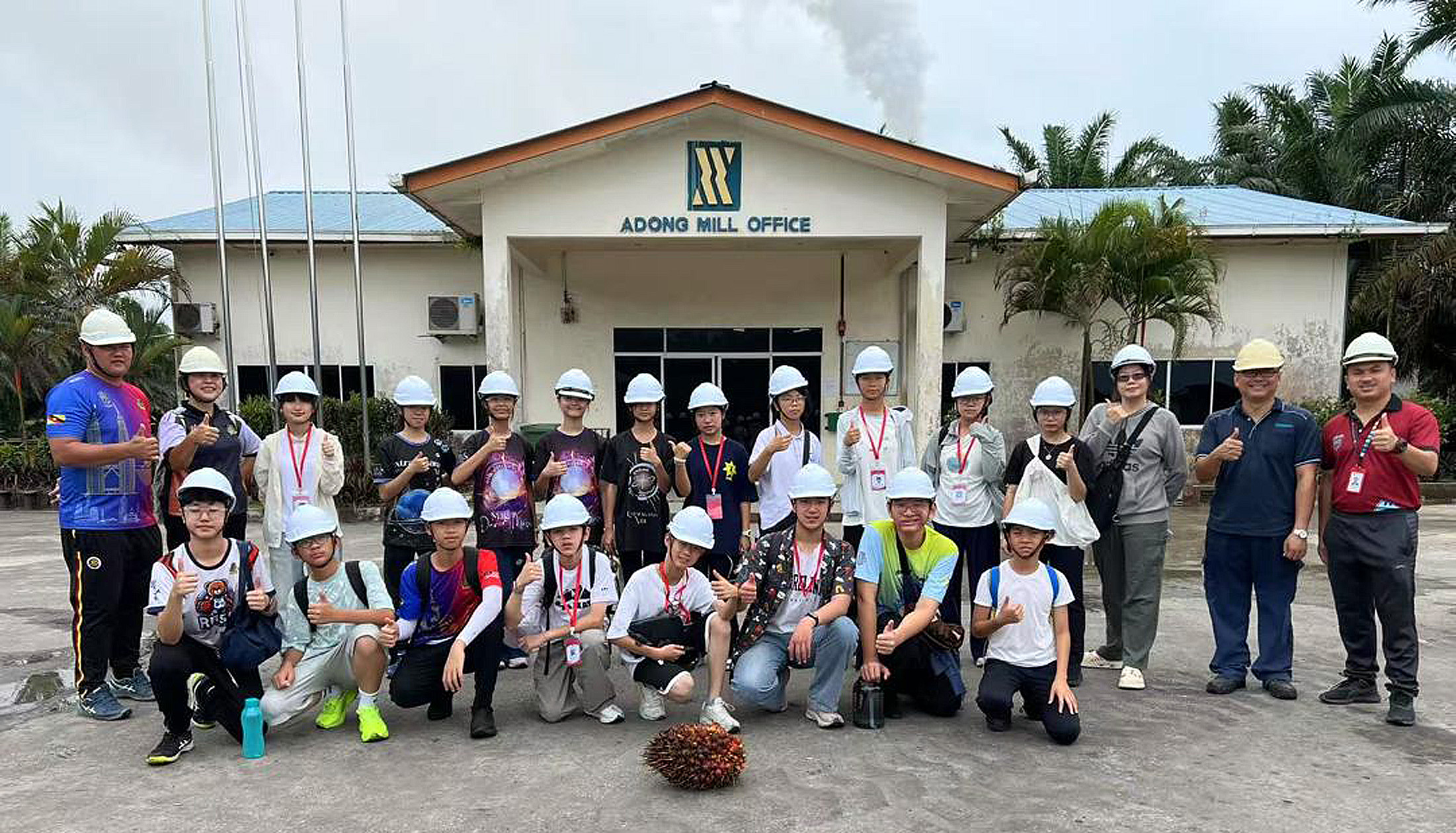 屏南华侨中学的9位学生在康亚雄联课副校长(右1红衣者)、李世豪联课副校长助理(左1 蓝衣者)、黄莉荔老师(右3灰衣者)和黄菊香老师(左2)的陪同下,带领中马两地学生参访位于 美里的Adong Palm Oil Mill油棕炼油厂。