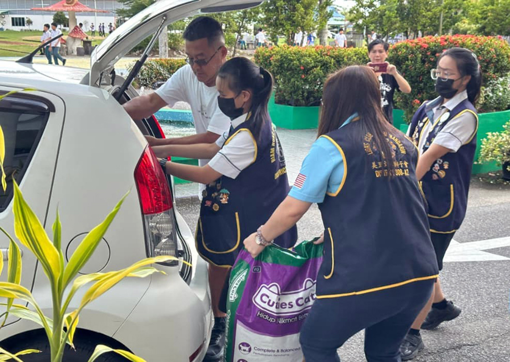 美里文华狮子会携手廉中幼狮会联合推动“Animal Hope”公益活动, 廉中幼狮会的幼狮们与美里文华狮子会会长蒋敏奉狮姐齐心协力,将爱心物资搬运上车。 共同关怀流浪动物,并以合影定格这份温暖与爱心。