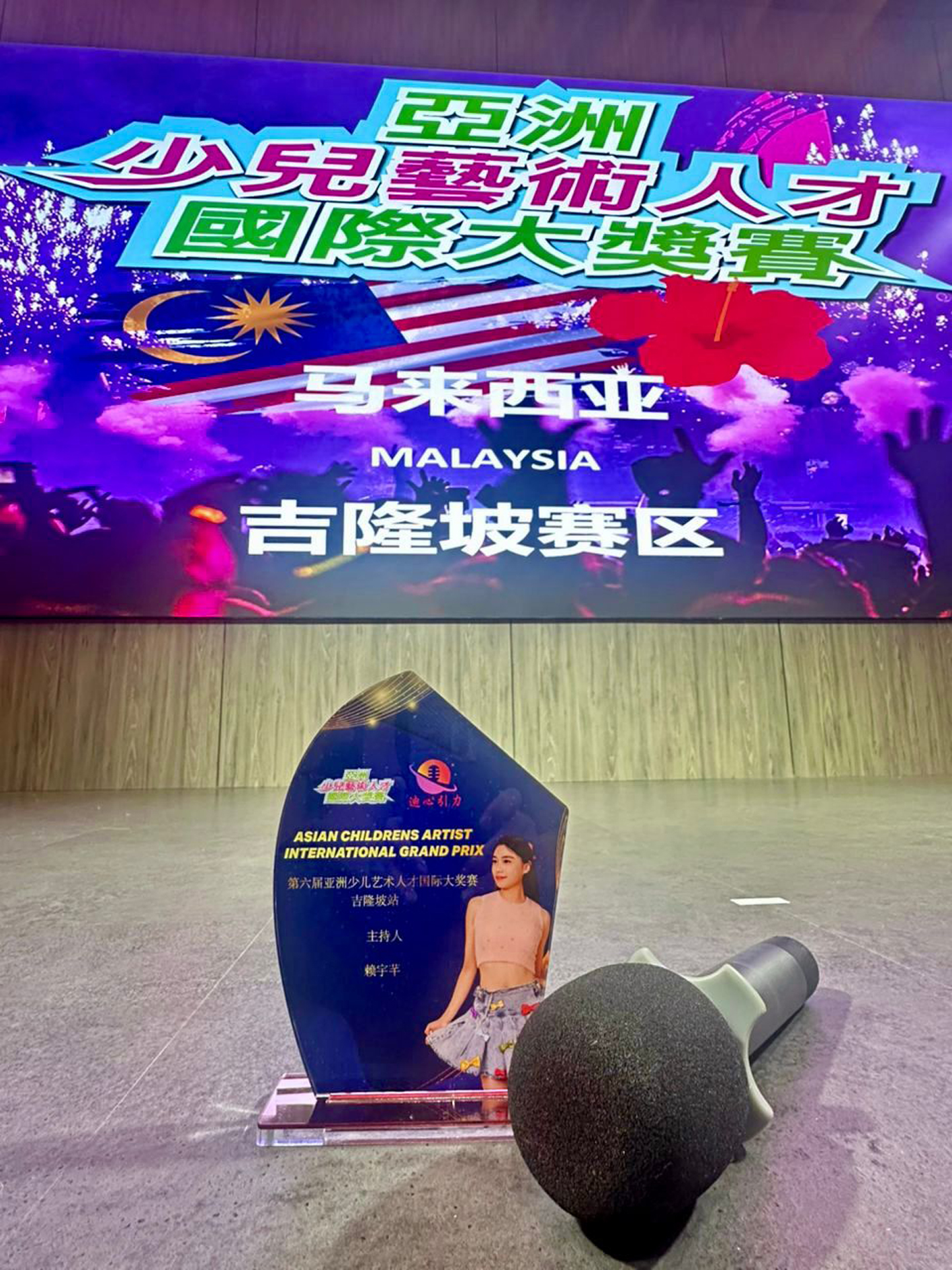 来自美里廉律中学的高二尊重班的学生赖宇芊,于2025年6月29日受邀担任“第六届亚洲少儿艺术人才国际大奖赛”(吉隆坡站)的全场主持人。这项由迪心引力与亚洲少儿艺术人才大奖赛组委会联合主办的国际级赛事,于 D SPACE Bukit Jalil 盛大举行,吸引逾250名来自各地的参赛者、评审与嘉宾莅临,现场气氛热烈、星光熠熠。