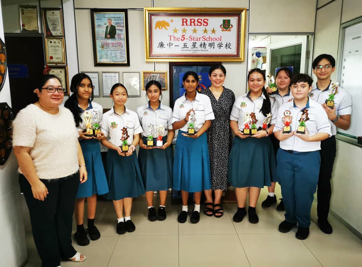 英语辩论赛:冠军 RRSS Debate Team - 佐舍 高二廉正班、余佳家 高二廉正班、林可诗 高二廉正班;亚军 Triple Threat - 罗娜•海莉•塞尔瓦姆 初一忠诚班、蕊卡•塞尔瓦姆 初一忠诚班、罗薇娜•罗斯•蒂亚加 初一忠诚班;季军 蒂芙尼•麦 初一勤勉班、威廉•克林•卡伦 初一勤勉班、梅莉什•凯拉 初一勤勉班;殿军 林珑 初一忠诚班、刘莹盈 初一忠诚班、拉菲拉•桑伽 初一忠诚班。