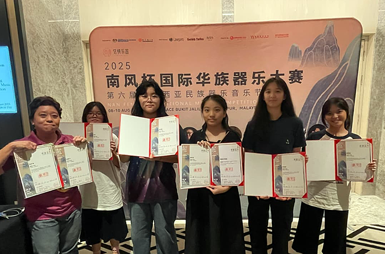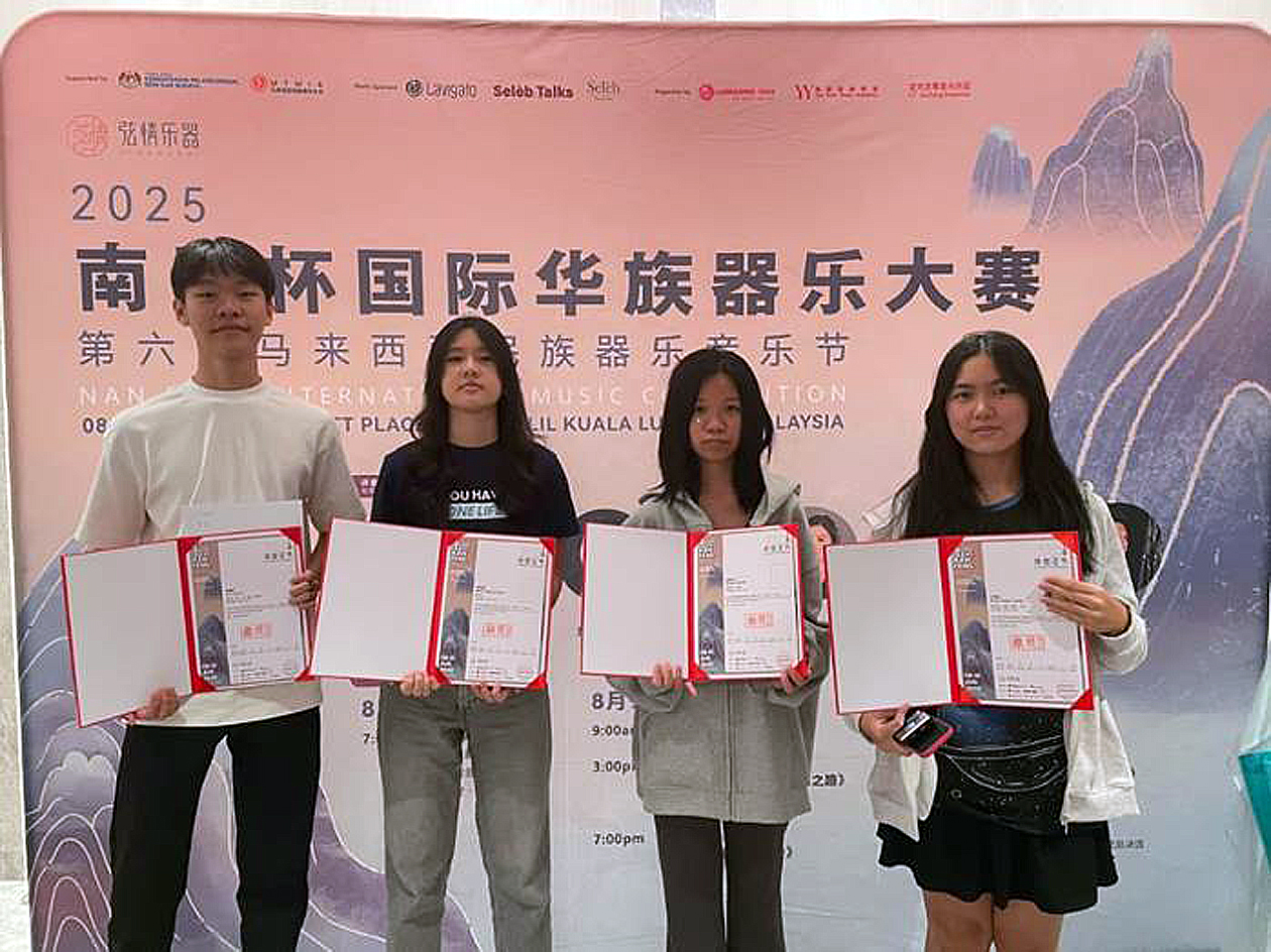 此外,该团古筝组在7月麻坡中化中学举办的"第二届全国中学生华乐赛(2025年)"中再获重奏组银奖,获奖成员包括张芳品、徐彗馨、贝育谚、崔洛菲、黄芷琳、郑联巧。