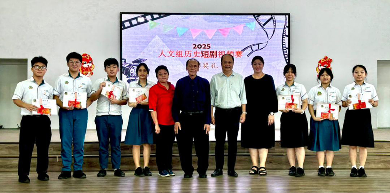校内历史趣味短视频比赛成绩:初中组冠军 初三感恩班A组 《五四运动》,亚军 初三感恩班B组 《马来亚反殖民统治》,季军 初二廉正班 《洋务运动》。