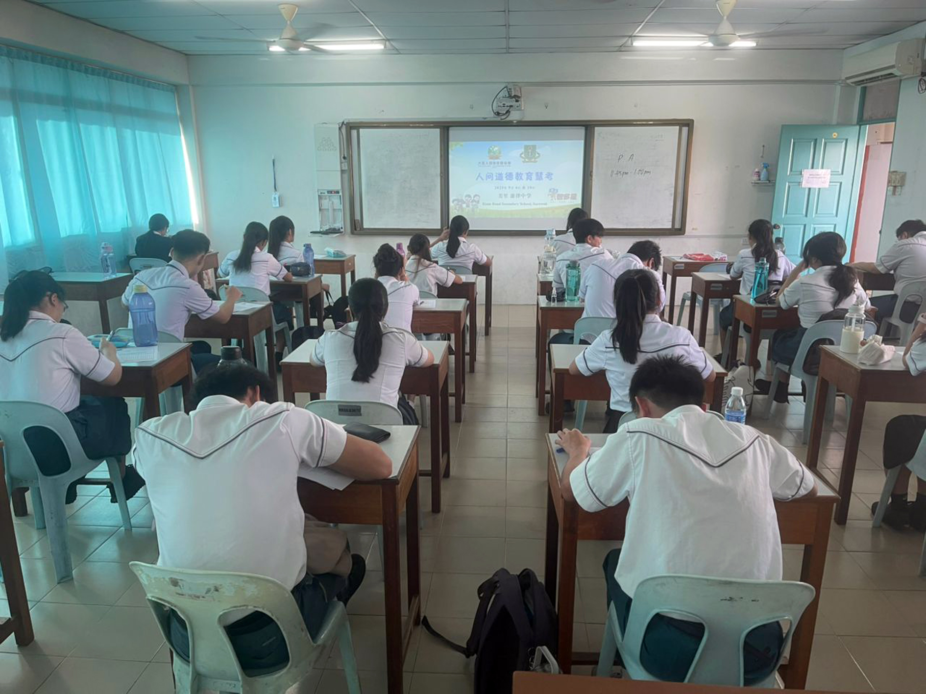廉律中学日前在全校同步进行了“人间道德教育慧考”,全校学生踊跃参与,现场气氛庄严而充满正能量。该活动乃由人间慈悲基金会发起,并获得国家教育部的认可,旨在通过系统化的道德教育测试,引导学生理解并实践真、善、美的价值观,同时推广“三善”理念——发善心、说善语、立善行。完成此项活动的学生亦可获得 PAJSK 联课活动分数,作为对其积极参与品格教育的肯定。