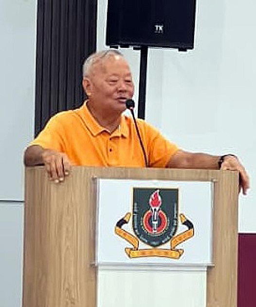 73健兒將在總領隊江佩娟校長的率領下,於19日赴詩巫公教中學參與“第七屆砂拉越 董事長拿督斯里劉久健給予73位健兒勉勵時攝。 華文獨中球類賽”,今日拿督斯里劉久健董事長(中間橘色衣)更是親臨學校給予 學生激勵和勉勵,並祝愿學生們凱旋歸來。