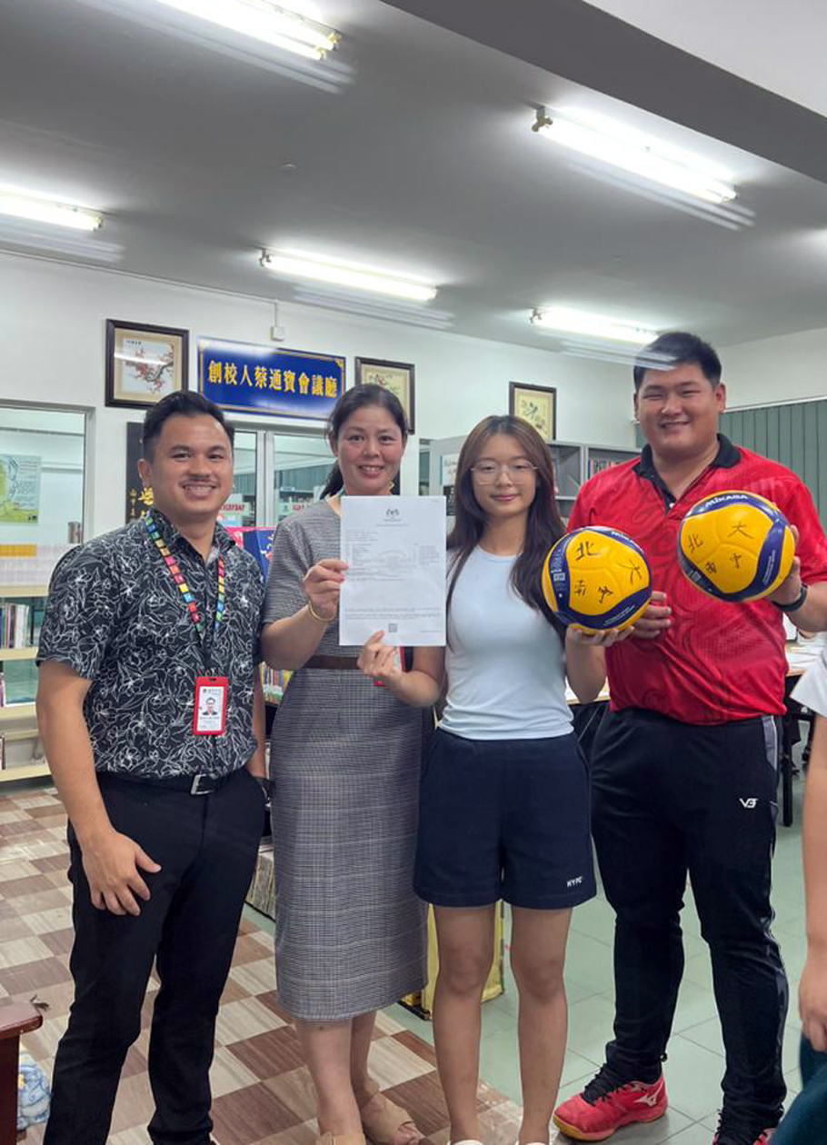 其中,张语恩同学在校期间表现全面发展,不仅担任学长团课外活动组组长,展现出卓越的领导能力;同时也是校排球队主力成员,球技出众。她曾入选砂州代表队,并于2024年代表马来西亚出征泰国公主杯;亦于今年初前往中国海南海口参与东南亚沙滩排球邀请赛,在国际赛场上持续发光发热,展现出卓越的竞技水平与拼搏精神。
